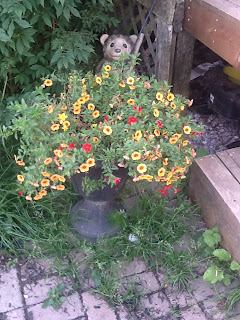 We had cheese sausages on the grill and had breakfast outside. Hubby and I did more yard work and the kiddies went for a swim. I finished the lawns and did my wipersniping around the fence posts and rocks.